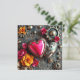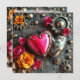 Pretty personalised steampunk photo template Valentine's Day card. Pretty pink roses, metal hearts and copper gears, The back has three spaces for pictures in the shape of a heart. You can edit the text too in the personalise area.