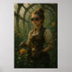 This steampunk Victorian gardener works in her conservatory tending to the collection of blooming plants around her in this fantasy artwork poster.
