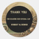 Express your gratitude in vintage-industrial style with this steampunk-inspired thank you sticker, featuring intricate brass gears, ornate clockwork, and metallic details. The aged parchment texture and deep emerald green accents create an antique, sophisticated look, blending Victorian elegance with a mechanical aesthetic. Perfect for sealing wedding favours, envelopes, or gifts, this sticker is a stylish addition to steampunk, retro-futuristic, or vintage-themed weddings. Fully customisable to include names or a short message, it is part of an exclusive high-end wedding collection, including matching invitations, menus, guest books, and signage. This design was created using AI technology. Click ‘Personalise’ to customise your wedding thank you sticker today!