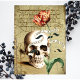 Steampunk Vintage Skull Floral Writing Holiday Postcard