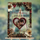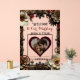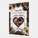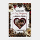 Pretty wedding sign with bride and groom's photo inside a heart. Transparent background with burgundy roses, gold and copper metal gears steampunk theme.
