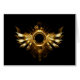 Shiny mechanical wings, with gears and brass round banner. Steampunk