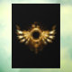 Shiny mechanical wings, with gears and brass round banner. Steampunk
