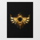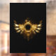 Shiny mechanical wings, with gears and brass round banner. Steampunk