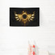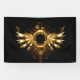 Shiny mechanical wings, with gears and brass round banner. Steampunk