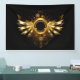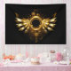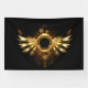 Shiny mechanical wings, with gears and brass round banner. Steampunk