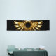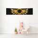 Shiny mechanical wings, with gears and brass round banner. Steampunk