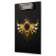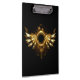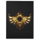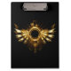 Shiny mechanical wings, with gears and brass round banner. Steampunk