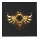 Shiny mechanical wings, with gears and brass round banner. Steampunk