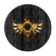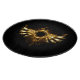 Shiny mechanical wings, with gears and brass round banner. Steampunk