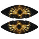 Shiny mechanical wings, with gears and brass round banner. Steampunk