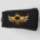 Shiny mechanical wings, with gears and brass round banner. Steampunk