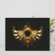Shiny mechanical wings, with gears and brass round banner. Steampunk