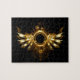 Shiny mechanical wings, with gears and brass round banner. Steampunk