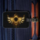 Shiny mechanical wings, with gears and brass round banner. Steampunk