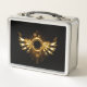 Shiny mechanical wings, with gears and brass round banner. Steampunk