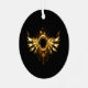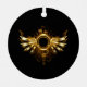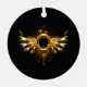 Shiny mechanical wings, with gears and brass round banner. Steampunk
