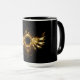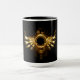 Shiny mechanical wings, with gears and brass round banner. Steampunk
