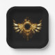 Shiny mechanical wings, with gears and brass round banner. Steampunk