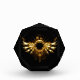 Shiny mechanical wings, with gears and brass round banner. Steampunk