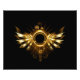 Shiny mechanical wings, with gears and brass round banner. Steampunk