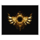Shiny mechanical wings, with gears and brass round banner. Steampunk