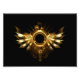 Shiny mechanical wings, with gears and brass round banner. Steampunk