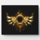 Shiny mechanical wings, with gears and brass round banner. Steampunk