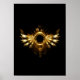 Shiny mechanical wings, with gears and brass round banner. Steampunk