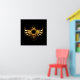 Shiny mechanical wings, with gears and brass round banner. Steampunk