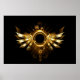 Shiny mechanical wings, with gears and brass round banner. Steampunk