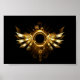 Shiny mechanical wings, with gears and brass round banner. Steampunk