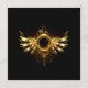 Shiny mechanical wings, with gears and brass round banner. Steampunk