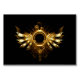 Shiny mechanical wings, with gears and brass round banner. Steampunk