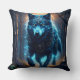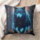 Steampunk Wolf Pillow. Featuring a luminous wolf adorned with intricate mechanical gears and glowing accents, set against a moonlit forest backdrop, this design perfectly blends the raw power of nature with the industrial elegance of steampunk.