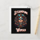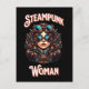 A digital illustration of a Victorian steampunk woman with goggles, gears and pipes.