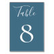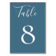 Trendy steel blue, solid colour, table number card. Text font style and colour can be customised.