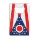 Enhance your gatherings with our steel bottle opener featuring the proud flag of Ohio! Crafted with attention to detail, this bottle opener proudly showcases the distinctive design of Ohio's flag. The flag features a large blue triangle representing Ohio's hills and valleys, surrounded by 17 white stars symbolising Ohio as the 17th state admitted to the Union. The red and white stripes complete the patriotic design, representing the roads and waterways of the state.