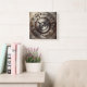 steel object with circles, dents, pits, industrial style, metal look wall clock,