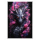 Dragon with steel skin and with lighting eyes. Flowers behind, wonderful style. Dragon lovers