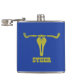 The flask itself is fine. It’s a cheap flask, obviously bought in bulk, however am prepared to overlook that. Given that it is a personalized item, I would have liked to have seen gift boxing instead of the generic packaging. Terrible printing, and/or quality. It’s a cheap, tacky vinyl. It is not cut straight and is also applied in a way that it is overhanging the bottom, causing the glue to catch on items and it will eventually roll and tear, damaging the wrap.