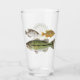 Bar glass for Stegbones Fish Camp featuring watercolor images from original work by Thom Glace. Largemouth Bass, Crappie and a Pumpkinseed Sunfish