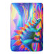 This bath mat has a colourful stegosaurus dinosaur on it.