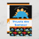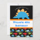 These cute stegosaurus dinosaur birthday party invitations are great for any prehistoric kids birthday party. There is a large stegosaurus at the top and also a collage of dinosaurs at the bottom. The back of the invitation has more dinosaurs and the invitation date, place, and RSVP details. Just add your own wording to the birthday party template for your very own personalised kids birthday party invitations. These are great for both boys birthday party invitations and girls birthday party invites. Discount sale prices for ordering in bulk.