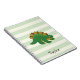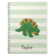Cool, colourful kid's green and tan prehistoric stegosaurus dinosaur, dino design on pastel mint green and off white stripes pattern. Perfect gift for baby, toddler, kids, children, teens, or adults! Personalised the design by adding a child's name or custom text. Visit our store, Birthday Party House, for more great customisable boy and girl products!