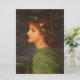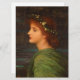 This design features a painting by the English Victorian artist Frank Dicksee (1853–1928). It is a portrait of a beautiful woman with red hair. She has a wreath of white roses around her head. She has blue eyes and rosy red lips. She is wearing a green dress. There are dark clouds in the evening sky behind the lady. The original artwork was painted by Frank Dicksee in 1900.
