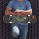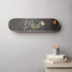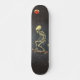 Stellar Alien Skater, showcases a unique AI-enhanced design featuring a skeleton riding a skateboard through a starry cosmos. This fantastical visual blends the surreal with the skeletal, as the bony figure manoeuvres effortlessly under a large, ominously red planet. The dark backdrop dotted with stars gives a sense of infinite space, enhancing the eerie yet playful theme of a skeletal voyager in the universe. This deck captures a whimsical and slightly gothic aesthetic, perfect for skaters who want to make a bold, artistic statement on the ramps and streets.