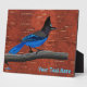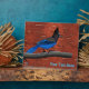 A primitive, or folk-art-style, image of a Steller's Jay (Cyanocitta stelleri) on the reddish inner or reverse side of the bark of a paper birch (Betula payrifera). Add your own text.