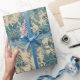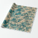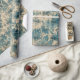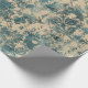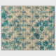 Blue/green stencil designed flowers over a background of cursive writing and bees. The background is a light tan. Perfect for decoupage, crafts, or gift wrapping. Please check out the "seam" view to make sure its acceptable.