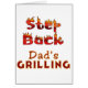 Funny BBQ aprons, t-shirts, mugs, keychains, cards, and more with flame style text that warns you to step back because dad is grilling!